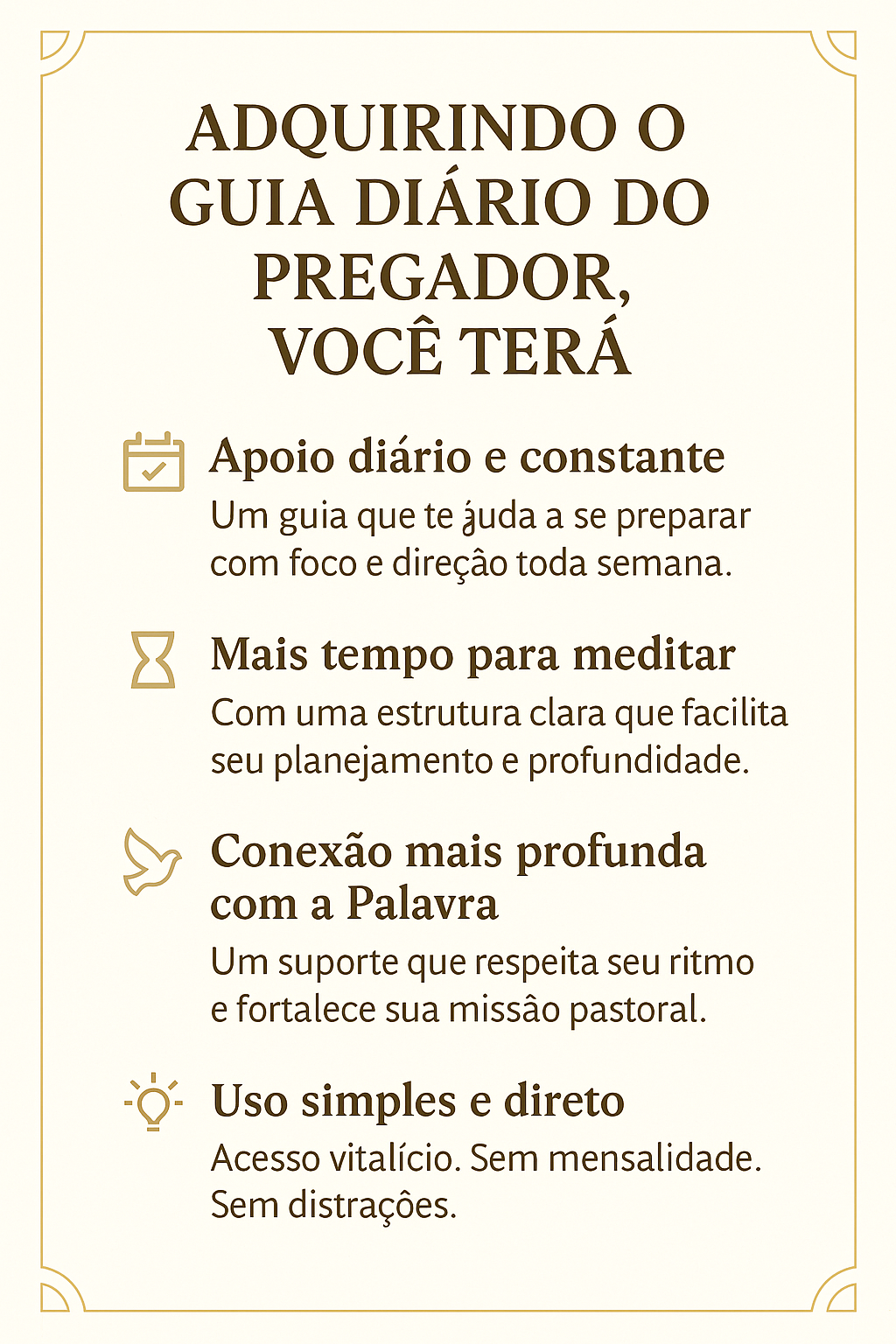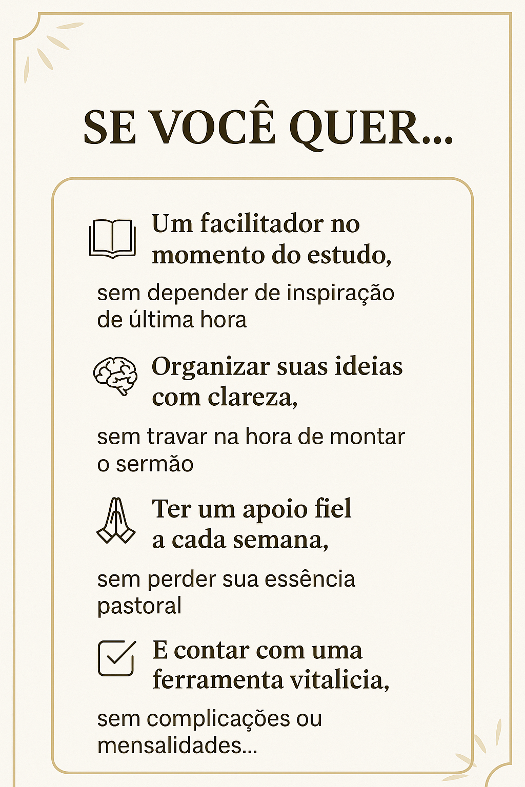 Sim! O Guia foi criado para facilitar e otimizar seu tempo de preparo. Em vez de ficar horas perdido sem saber por onde começar, você foca no que realmente importa e aproveita melhor seu tempo com Deus e a Palavra.